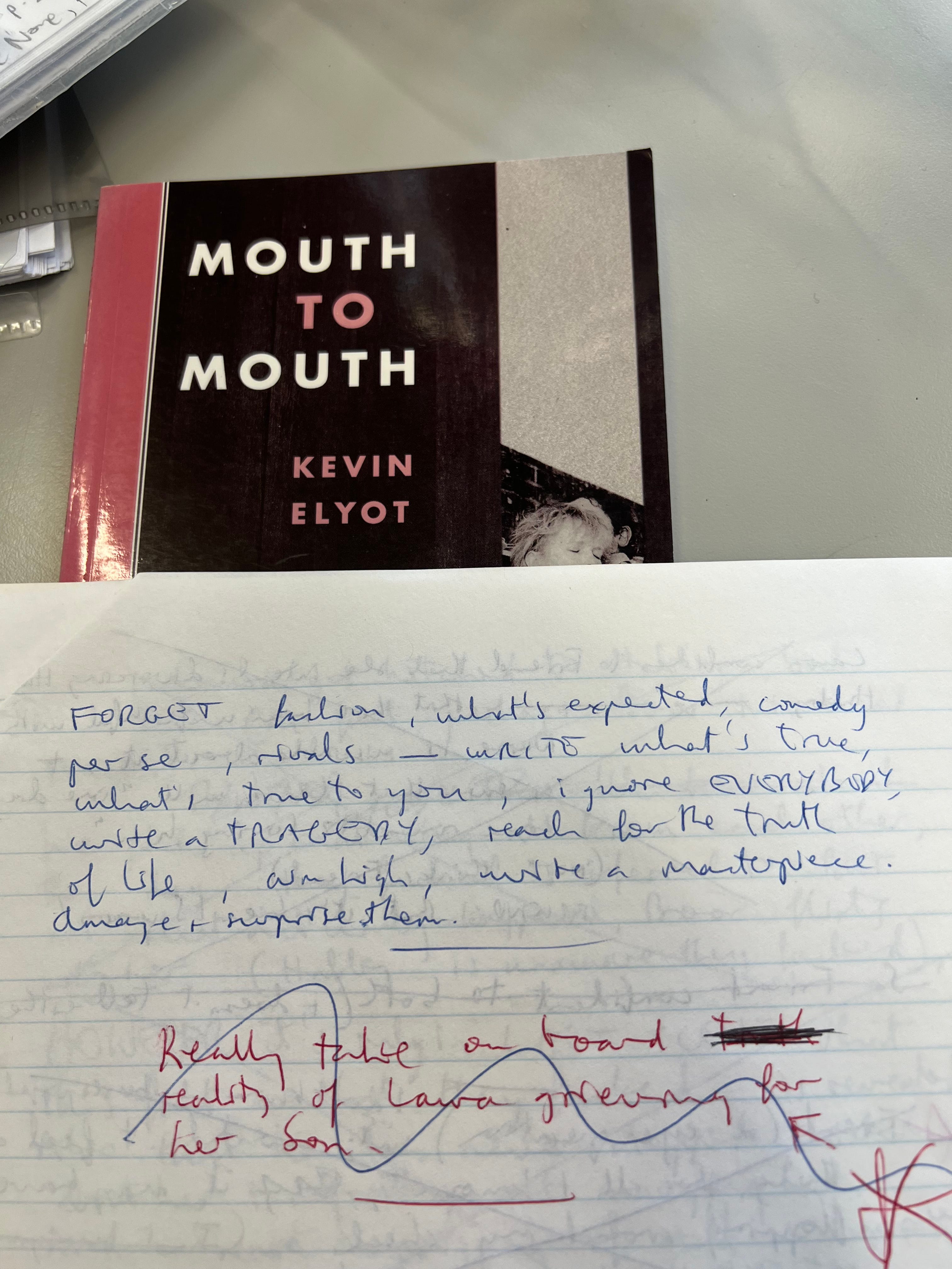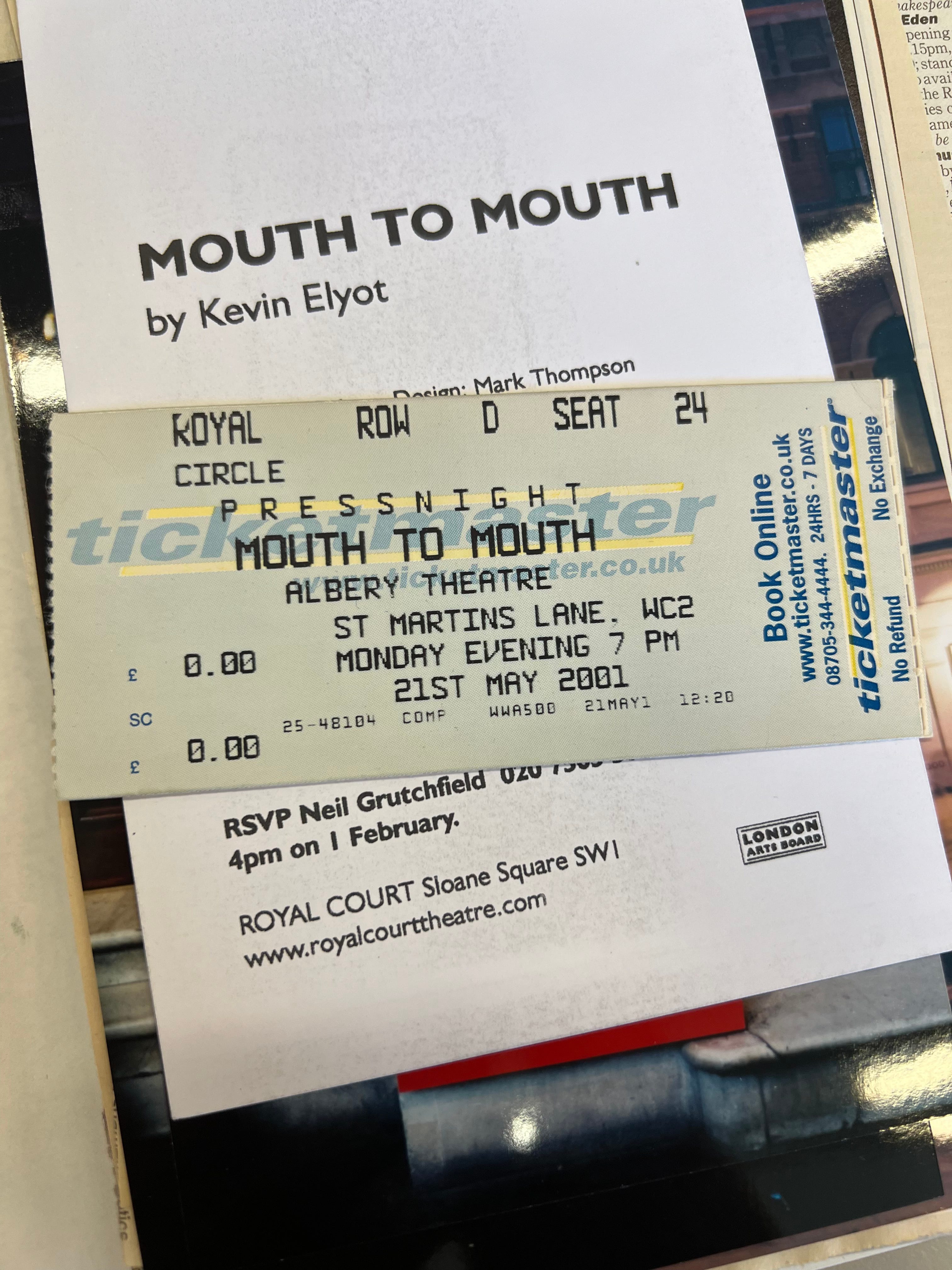 The central character in Elyot’s fourth original play Mouth to Mouth is a playwright called Frank. When asked by the journalist Heather Neill at the time of the play’s premiere in 2001, ‘does Frank equal Kevin?’, Elyot could not quite deny it: